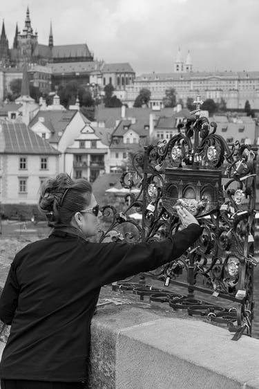 Im Juni 2012 machten meine Frau und ich Urlaub in der Sächsischen Schweiz. Mit einem Busunternehmen aus Bad-Schandau machten wir an einem Tag einem Tagesausflug nach Prag. Die Zeit dort reichte nicht aus, um ein fotografisches Porträt der "goldenen Stadt" zu erstellen, aber es bot sich die Gelegenheit, einige fotografische Eindrücke zu sammeln. Ich habe versucht, die besondere Stimmung an den touristischen "Hotspots" einzufangen. Die Fotos sind ein frühes Beispiel für meinen fotografischen Schwerpunkt "Stadtfotografie".