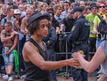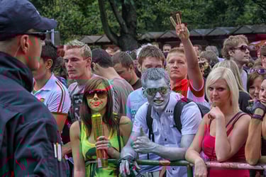 Rund zwei Stunden später ereignete sich im Bereich des Zugangs zum Festivalgelände ein tragisches Unglück, bei dem 21 Menschen ums Leben kamen und mehr als 500 weitere verletzt wurden. Die hier gezeigten Fotografien entstanden vor dieser Katastrophe und stehen in einem Spannungsverhältnis zwischen der damaligen Wahrnehmung des Ereignisses und dem Wissen um seinen späteren Verlauf.